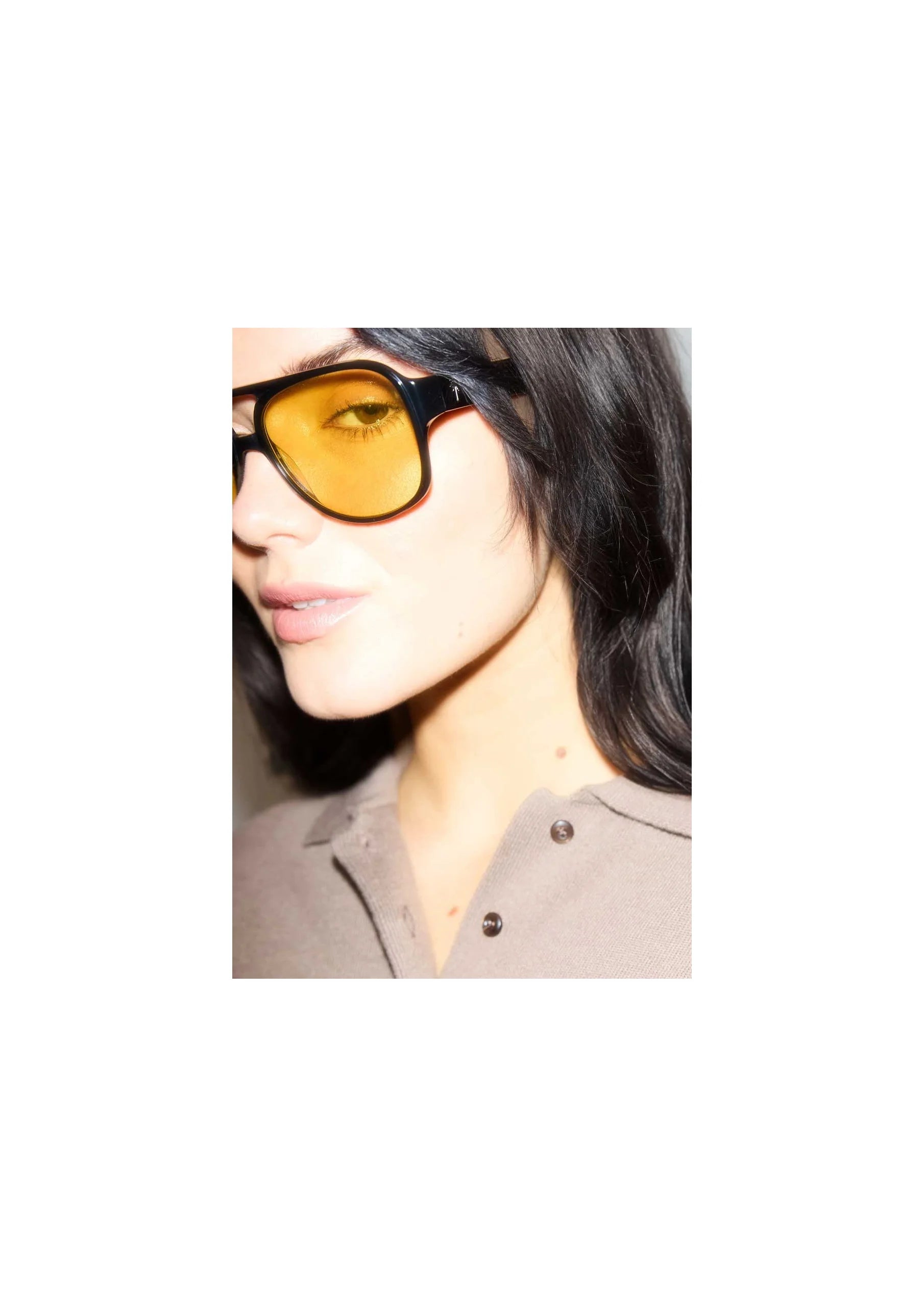 e Le Club sunglasses with golden lenses. The frame is a cool navigator style made from high quality acetate and with the RAIINE signature palm tree as an inlay on the temples.