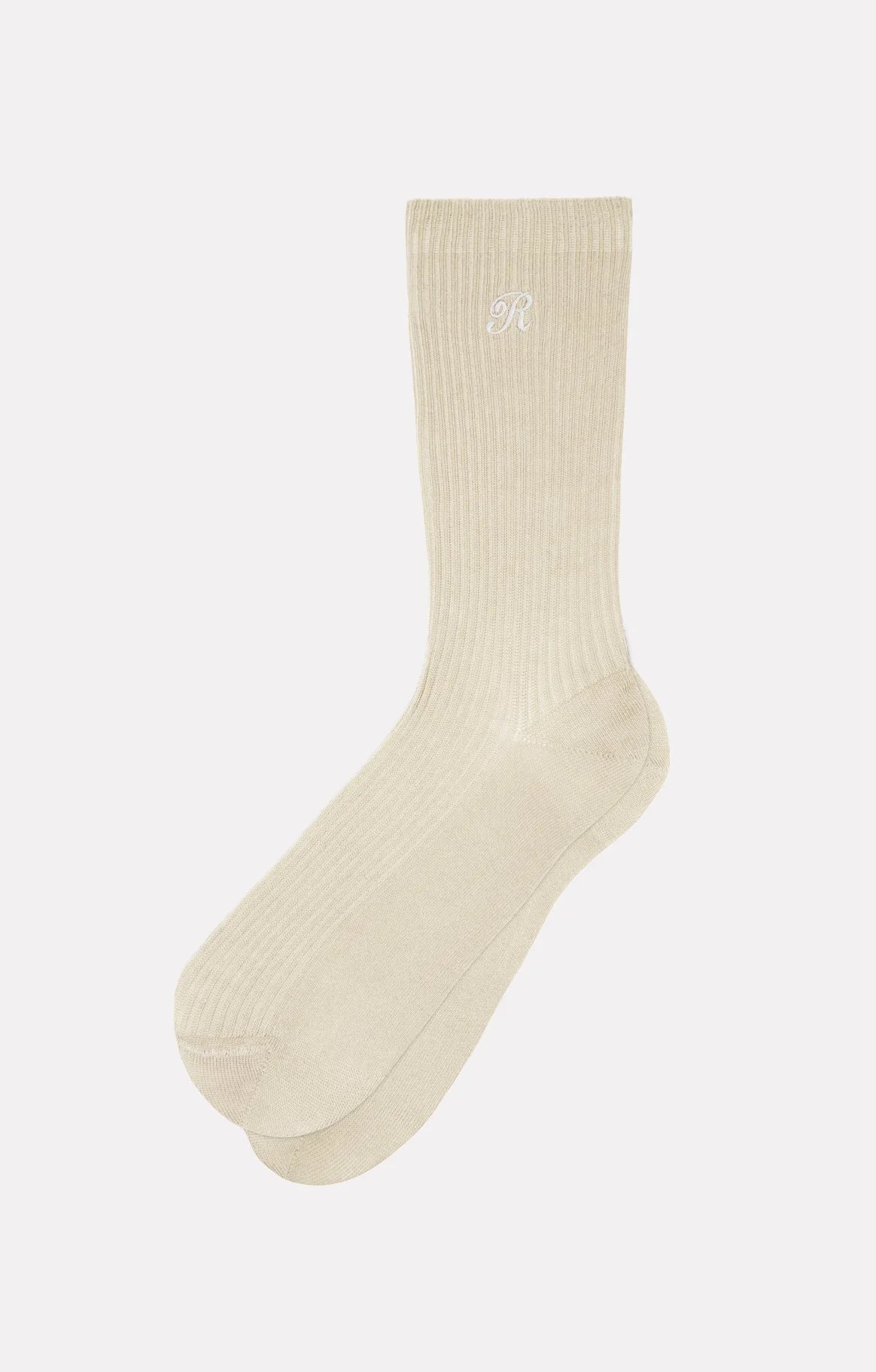 These ribbed socks are crafted from Scottish cotton, offering a soft and lightweight feel. The ЯR logo is embroidered on the side for a subtle signature finish.