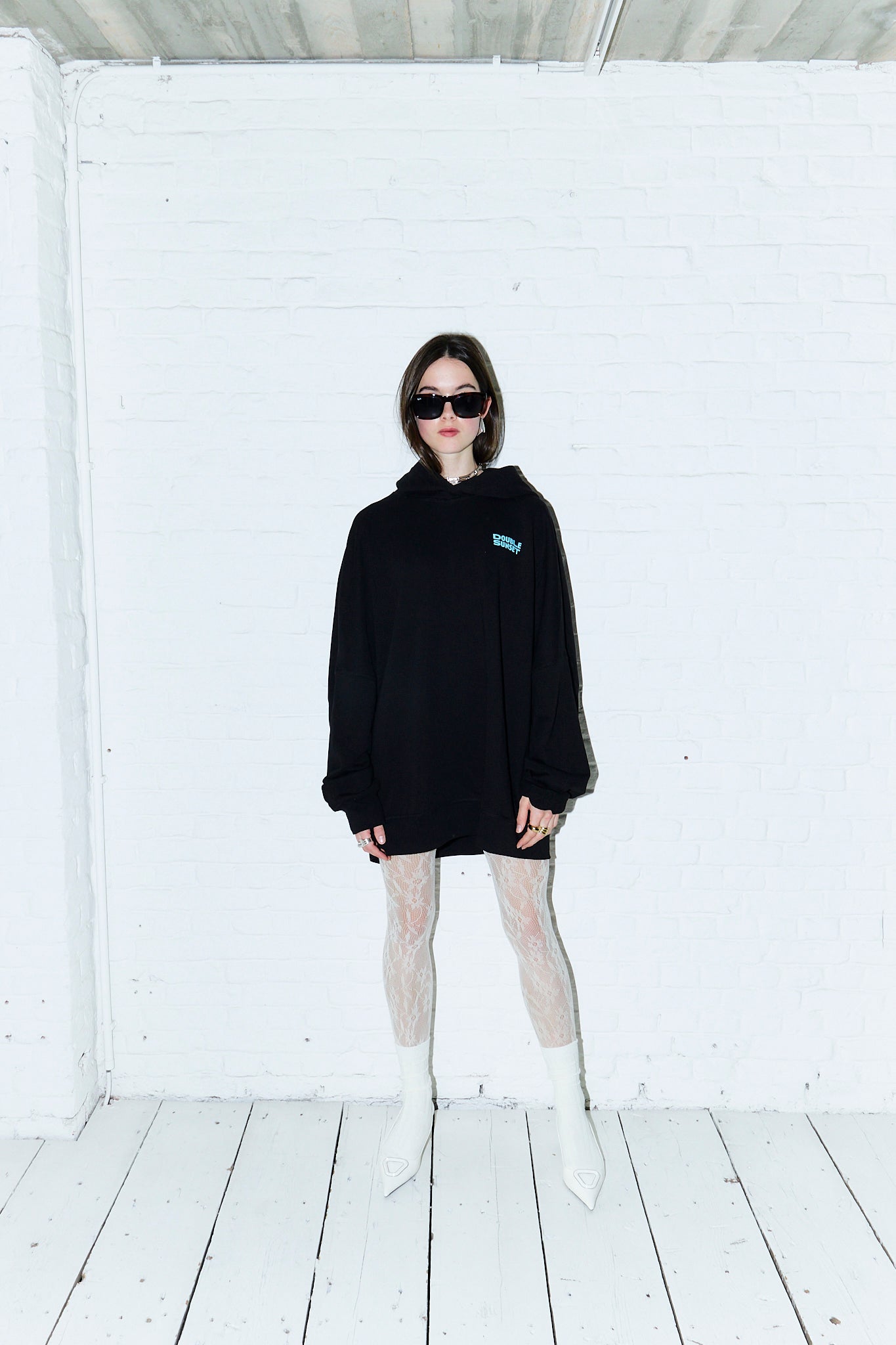 Oversized long hoodie with the iconic Double Sunset logo. Featuring a relaxed fit, dropped shoulders, two front pockets, and an extended length, it’s the perfect blend of style and comfort.