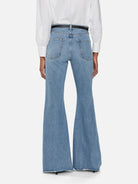 For the laid-back LA girl in us all, this jean sits just above the hip and breaks into a relaxed, wide-leg flare. The spacious fit is defined by rigid denim for structure and a raw, frayed hem for an authentic vintage feel.