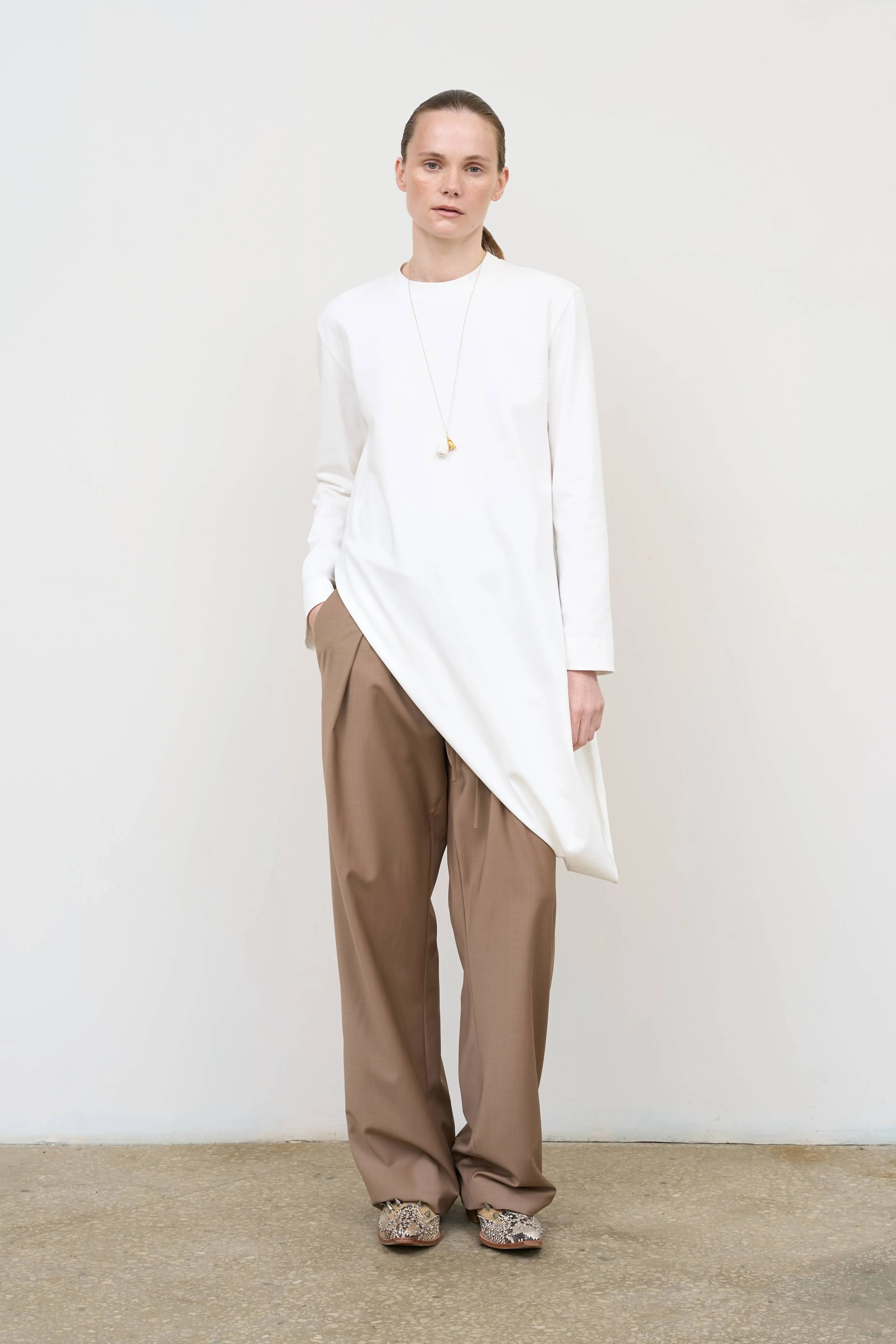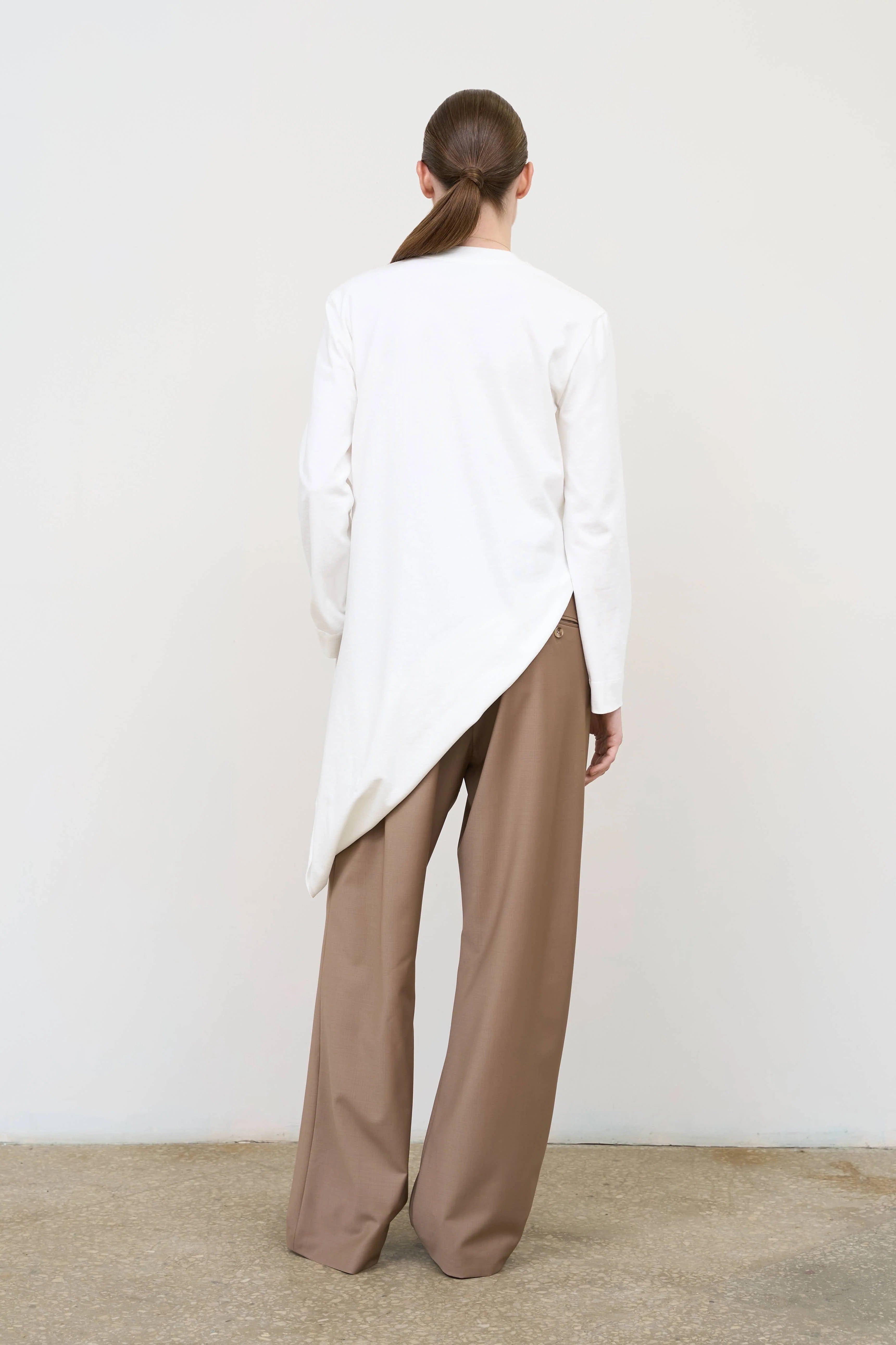 Asymmetric cotton longsleeve that transforms the silhouette like a constructor. Thoughtful tailoring allows transforming the shape and styling options, adapting the piece for different looks — from minimalist to statement. Comfortable for everyday use, versatile in combinations, created for a layered wardrobe.