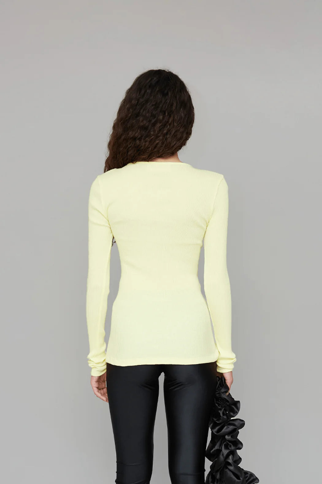 The iconic Claire Seamless Cardigan in elfin yellow is crafted from seamless 100% organic cotton. The cardigan has a fitted silhouette with long sleeves, a round neckline, and all-over ribbed detailing. It closes at the front with a wavy button closure and can be worn fastened or left undone. Please note that our seamless styles are designed with significant stretch, which is why the measurements in our size guide show only minimal variation.
