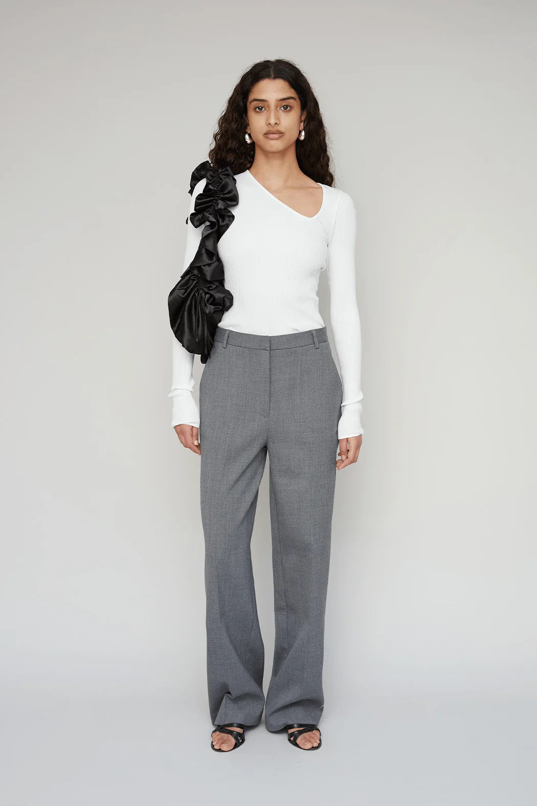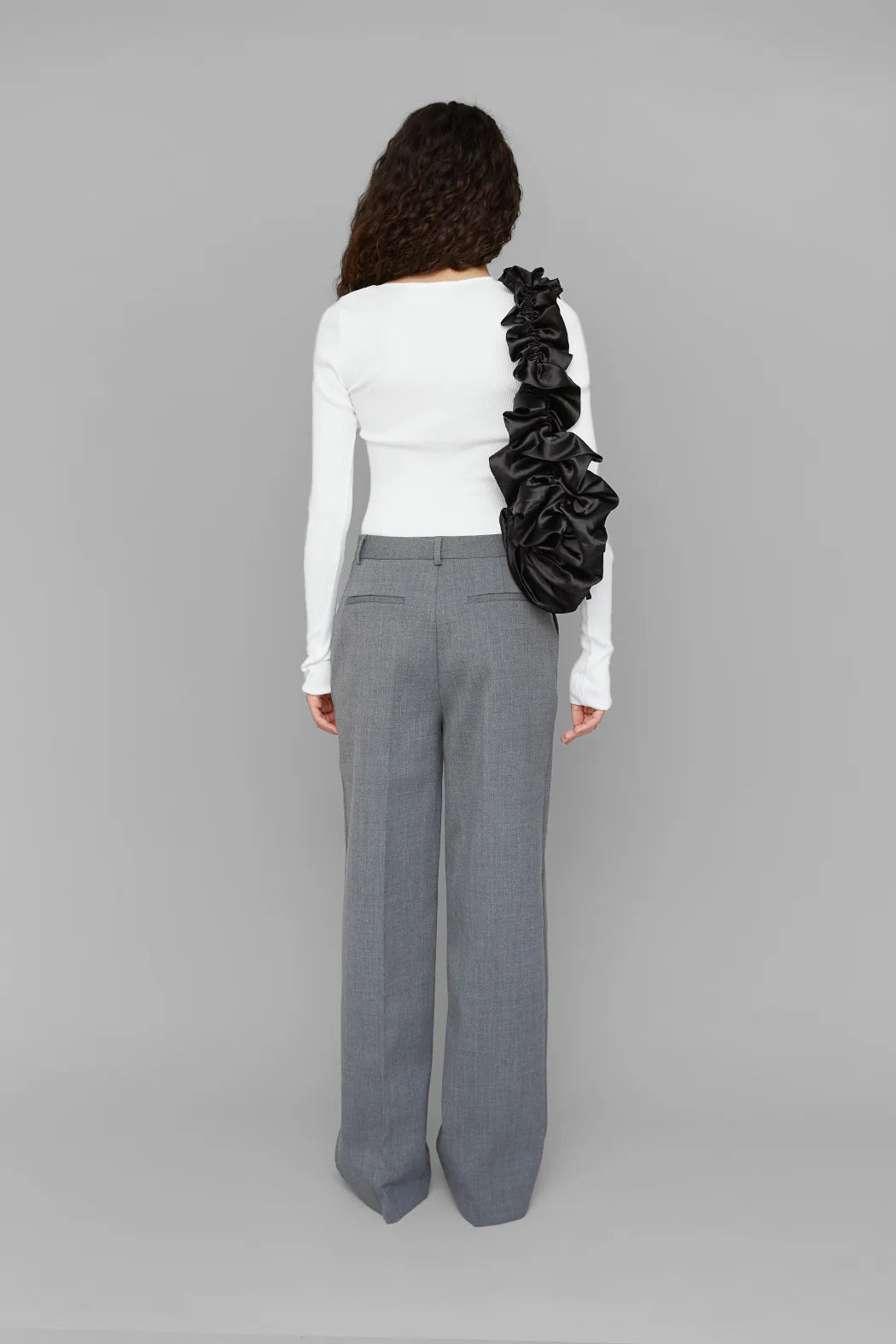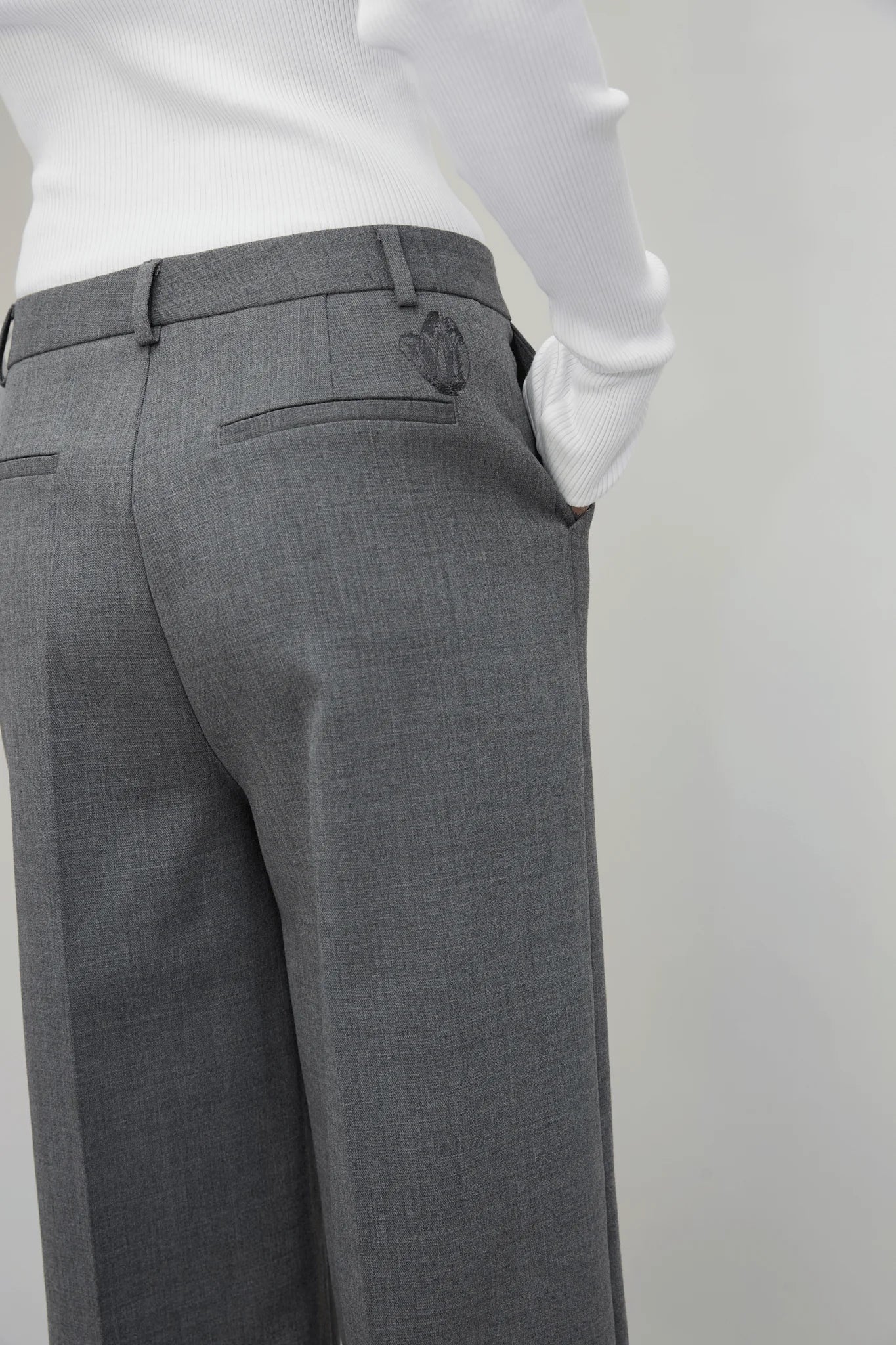 Trouser is crafted from 100% organic cotton. Designed in grey, the trousers feature a straight, tailored leg that creates a clean and elongated silhouette. Finished with belt loops and a front closure, they are a versatile wardrobe essential that pairs effortlessly with the matching Nèlia Blazer or can be styled on their own.