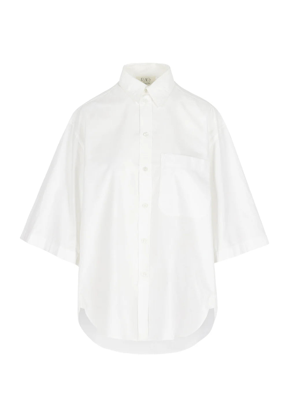 Oversized shirt in cotton with short sleeves ending at the elbow and classic collar. Long silhouette. We recommend taking your usual size, or size down for a more fitted look.