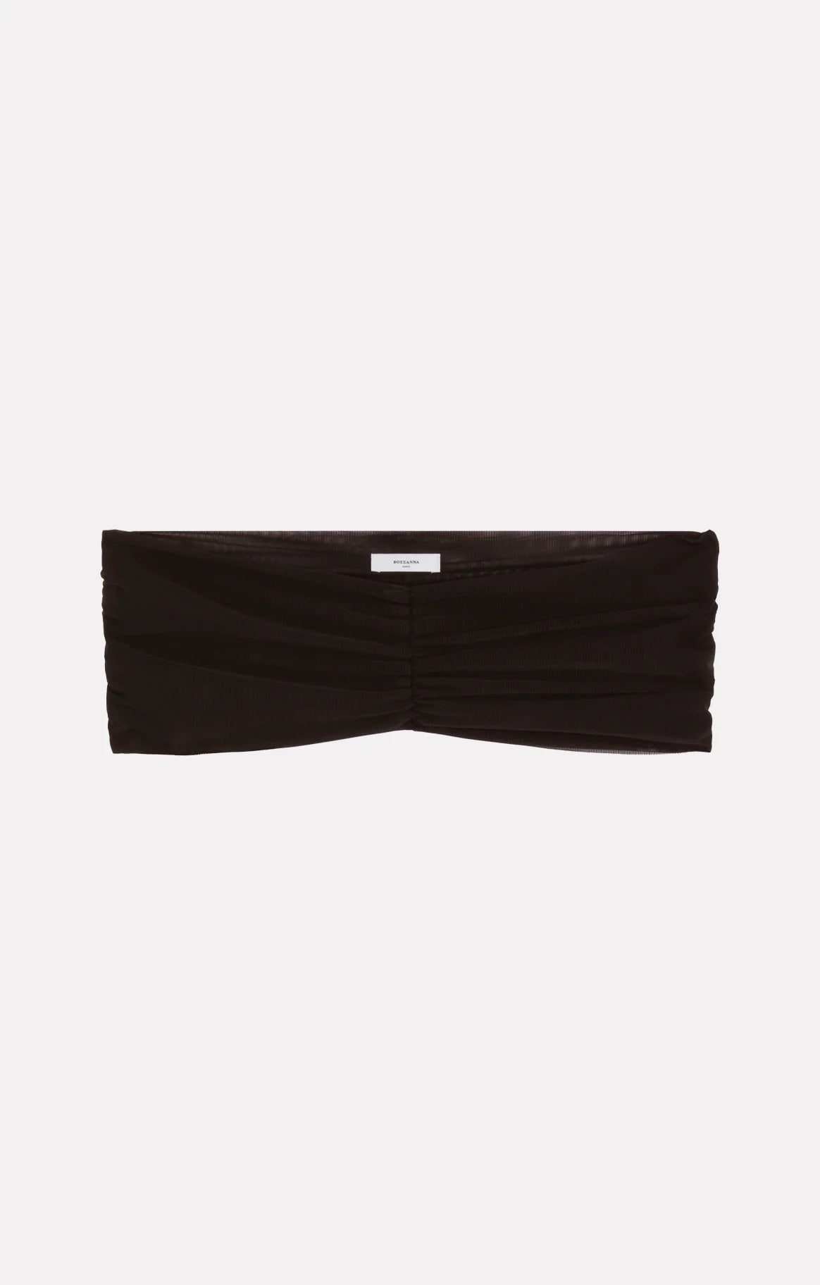 This strapless bandeau in double tulle features a gathered detail at the center and a discreet finish. It is meant to be worn under sheer pieces.