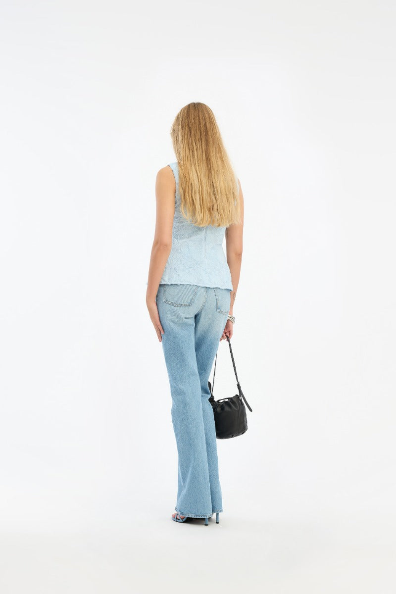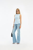 Rotate Light Blue Mesh Sleeveless Top