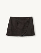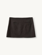 Classy, elegant mini skirt with a subtle light grey lined pattern, elevated by a cut-out detail and a decorative sewn-on back pocket.