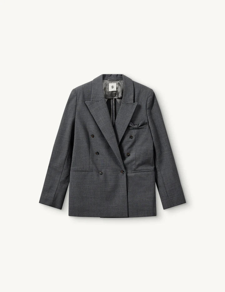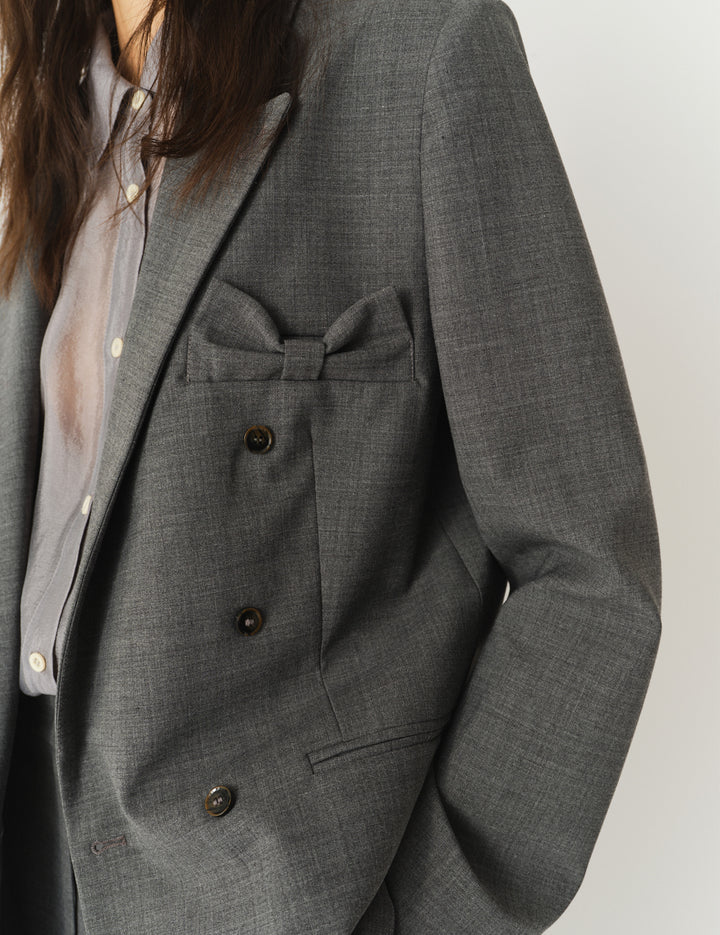 The Grand Blazer is a crafted statement piece, distinguished by a feminine bow detail on the chest pocket.