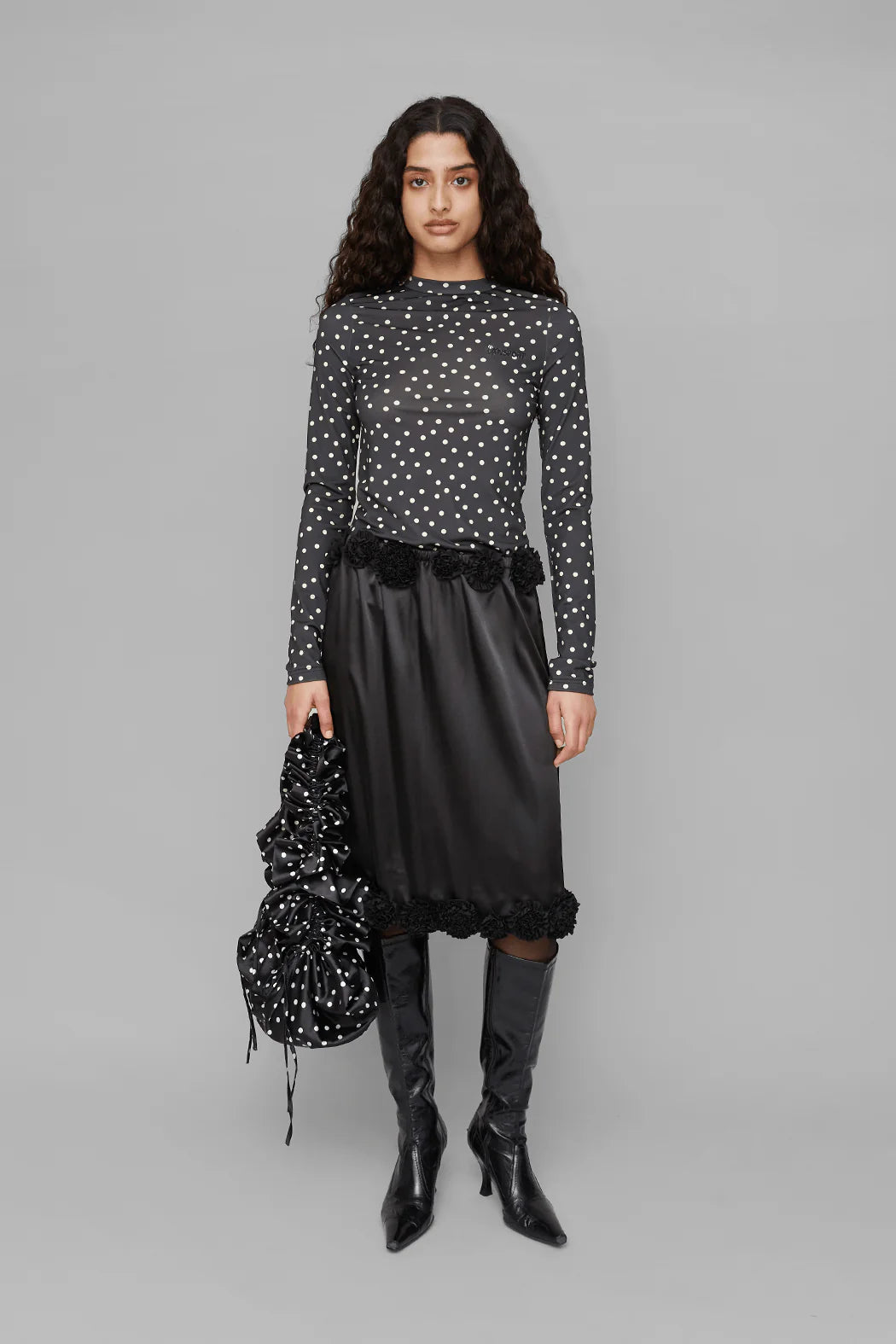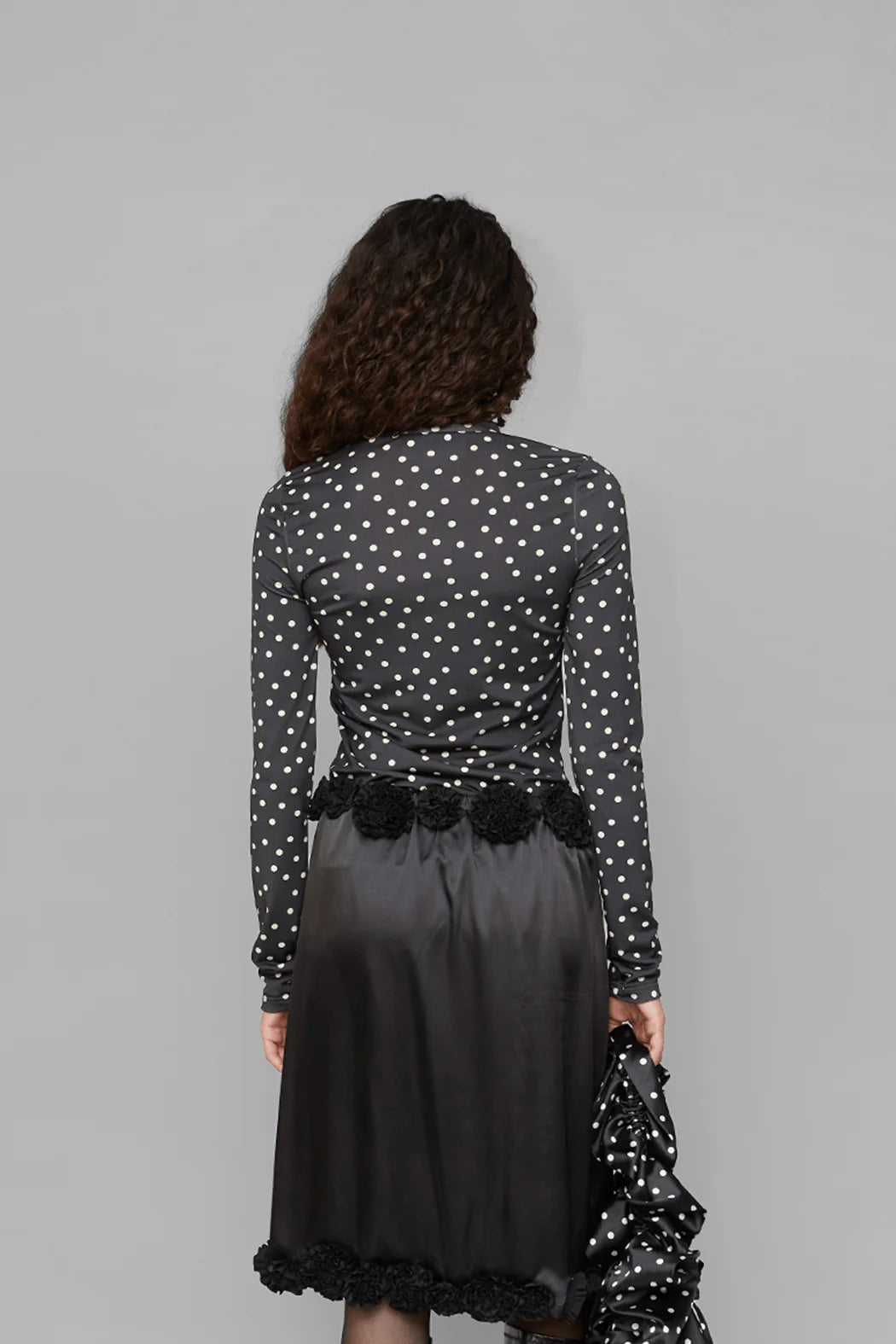 crafted from 82% recycled polyamide and 18% spandex. Designed in a white dots print, this fitted long-sleeve style features a high neckline and the signature OpéraSPORT logo at the chest. With its stretchy, body-hugging silhouette, it is lightweight and versatile, making it easy to wear on its own or layered under jackets and dresses.