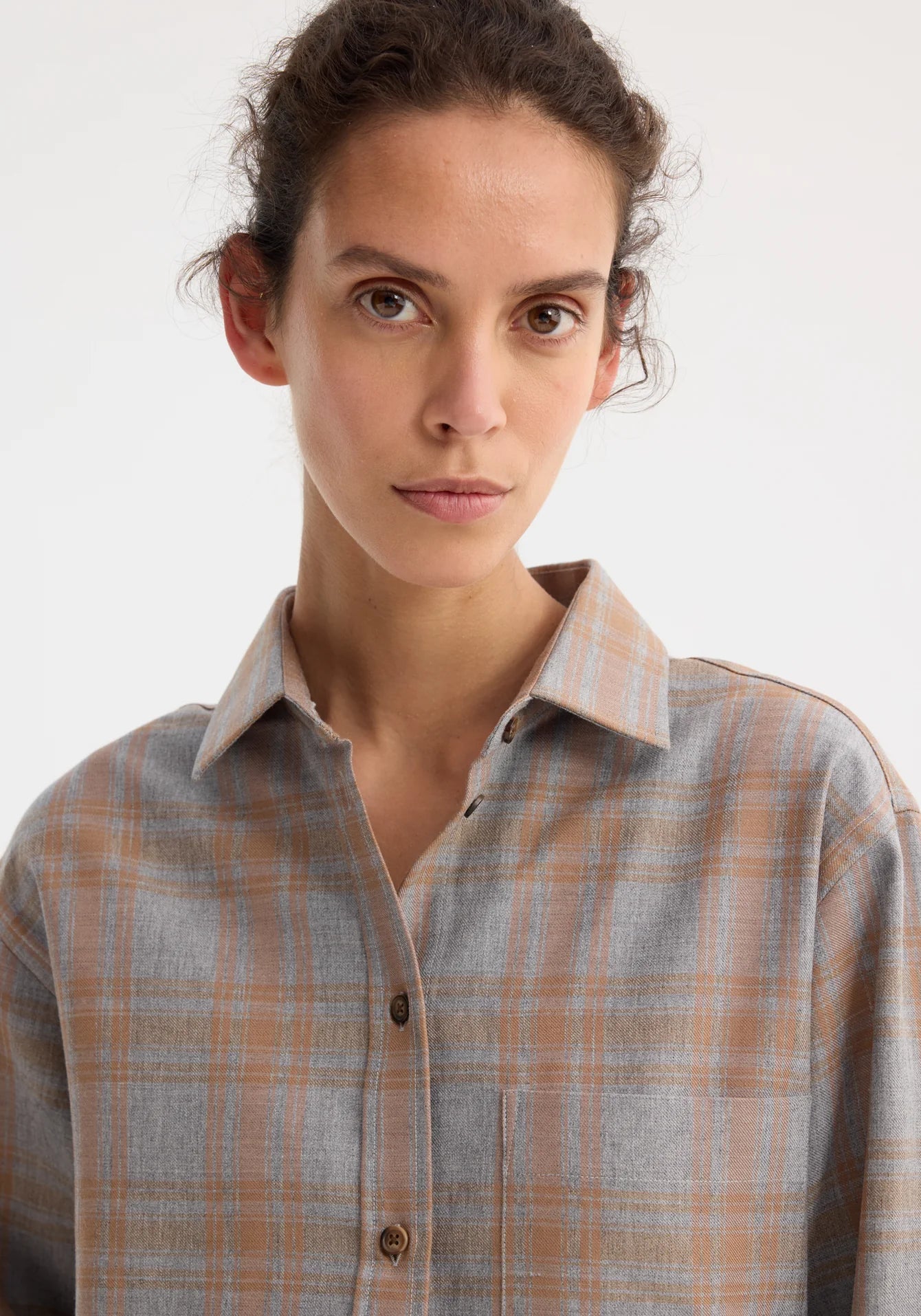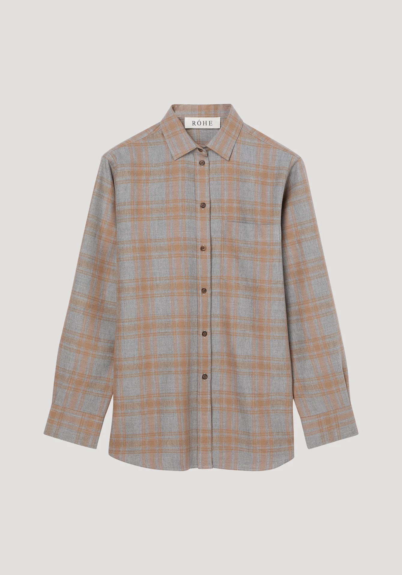 Rohe, A refined button-down shirt in a soft powder-toned check blending a tailored look with a subtle texture. Crafted from a virgin wool blend that lends a sense of structure while remaining light on the skin.