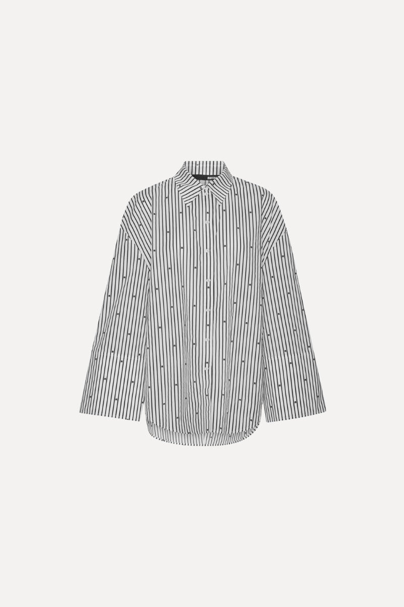 Rotate, The poplin oversized shirt embodies effortless confidence. Made from crisp organic cotton, it features a relaxed, oversized silhouette designed to move with you. A sharp collar, curved hem, and the all-over ROTATE monogram stripe add a polished touch to this elevated everyday essential.