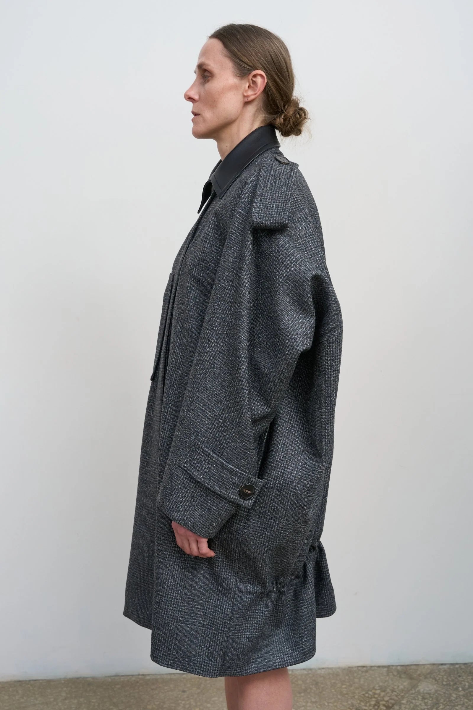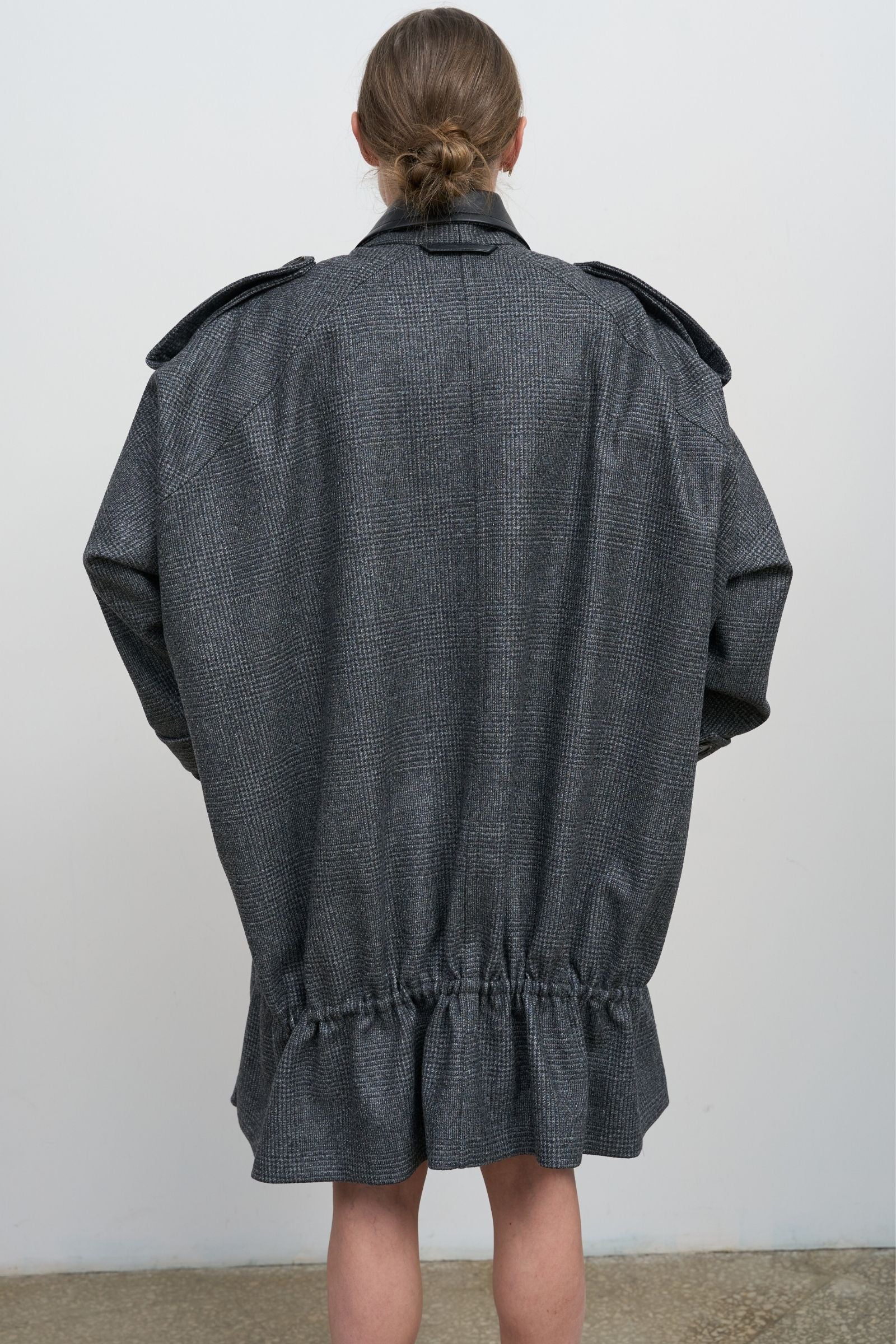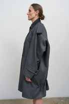 Grey wool parka with minimalist, modern design. 100% virgin wool with viscose lining for comfort and warmth.