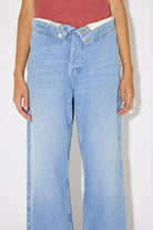 Mid-rise with turned-over waistband, belt loops, and back patch featuring Amish-inspired embroidery. Zipper and logo button closure. Two front and two back pockets with contrast thread embroidery. Wide-fit silhouette.