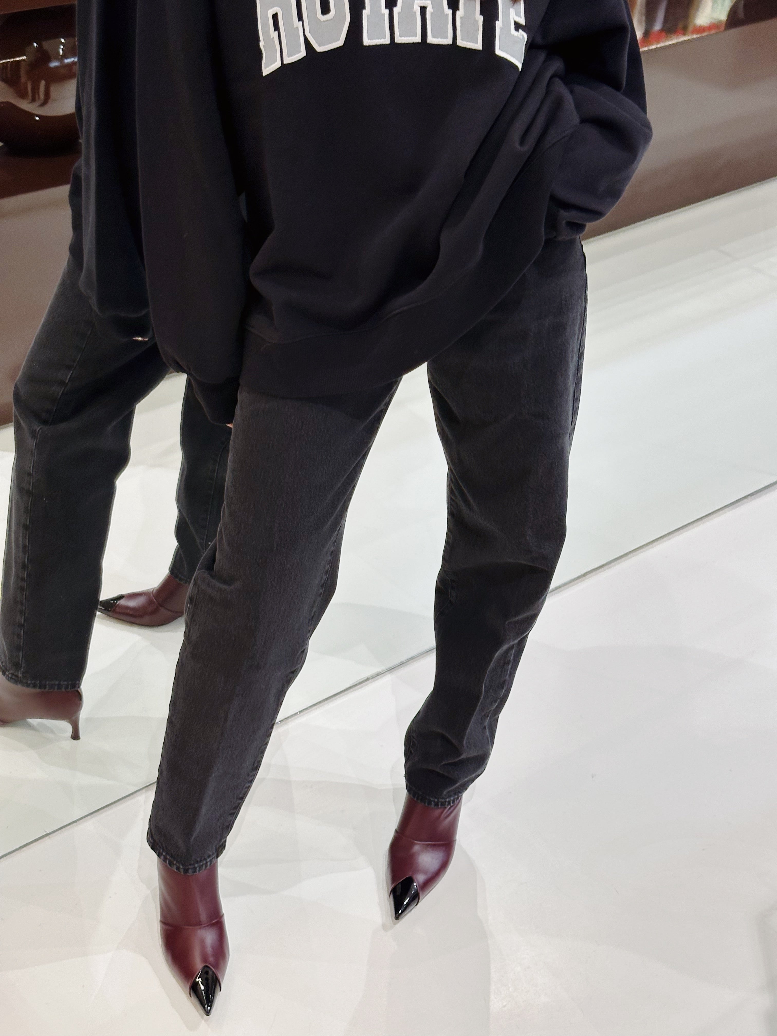 this sleek, streamlined jean features a nipped waist, ultra-long leg and crisp trouser hem for a dressed-up look. Crafted from classic non-stretch denim.