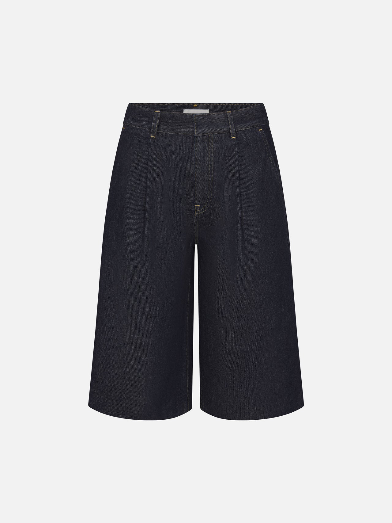 This short is tailored in regenerative non-stretch denim for a classic, structured silhouette. Hits mid-knee and features pleats at the top. Pair with The Denim Vest for an effortlessly polished ensemble. In Rinse, a rich deep indigo wash.