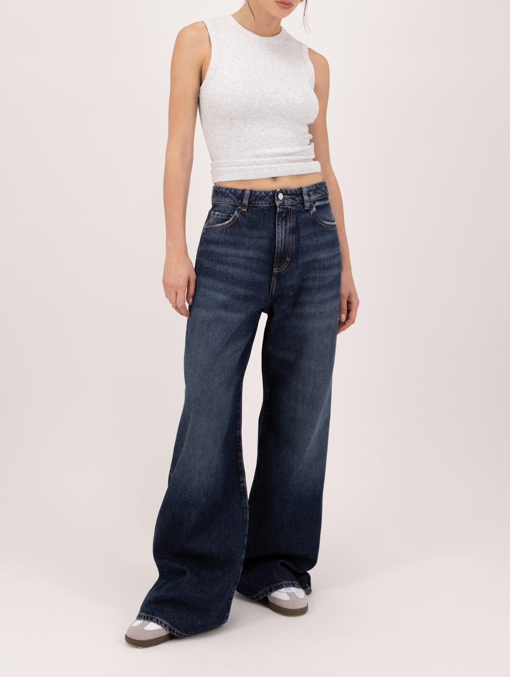 the iconic women’s wide leg jeans — crafted from 100% rigid soft cotton denim.