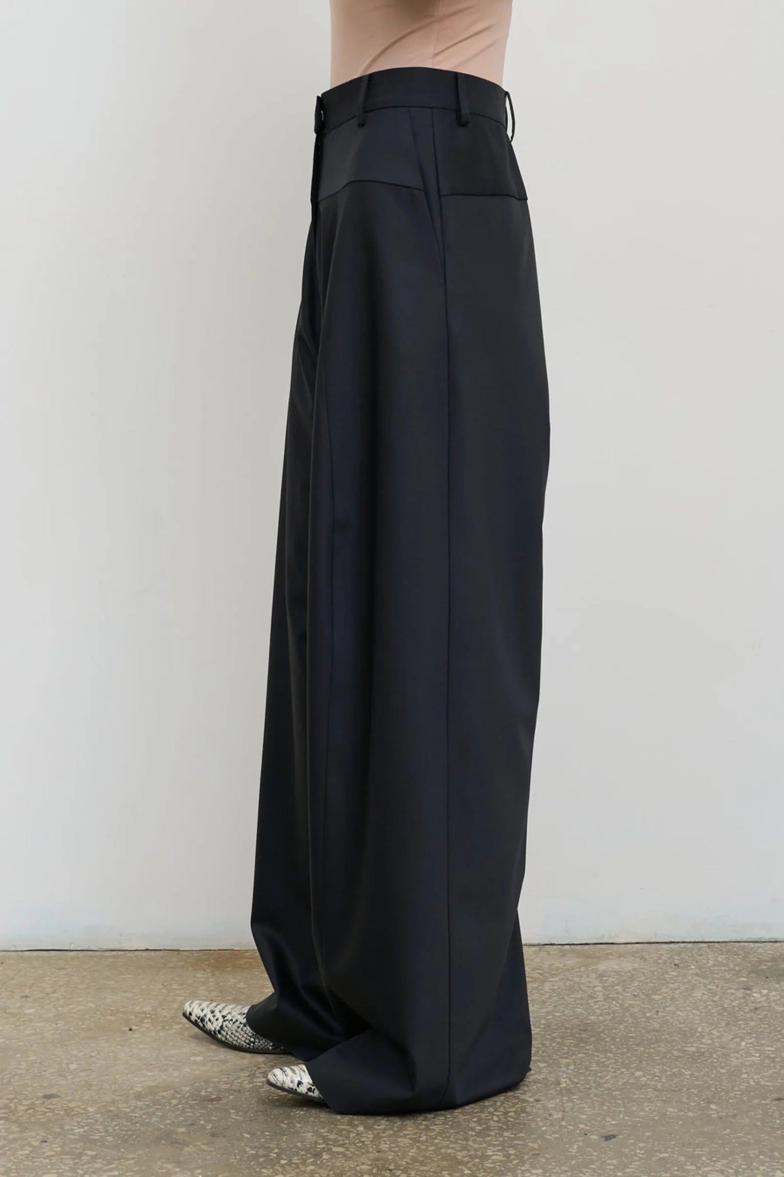 High-Rise Wool Wide-Leg Pants bring sharp style with a relaxed edge. Handmade in Ukraine, the beige pants are crafted from 100% virgin wool, while the black pants blend 85% wool, 12% polyamide, and 3% elastane for a touch of stretch, these pants offer a high-rise fit and flowing wide-leg cut for comfort and flair. Available in beige or black, their soft, slightly stretchy fabric suits both crisp shirts and loose knits.