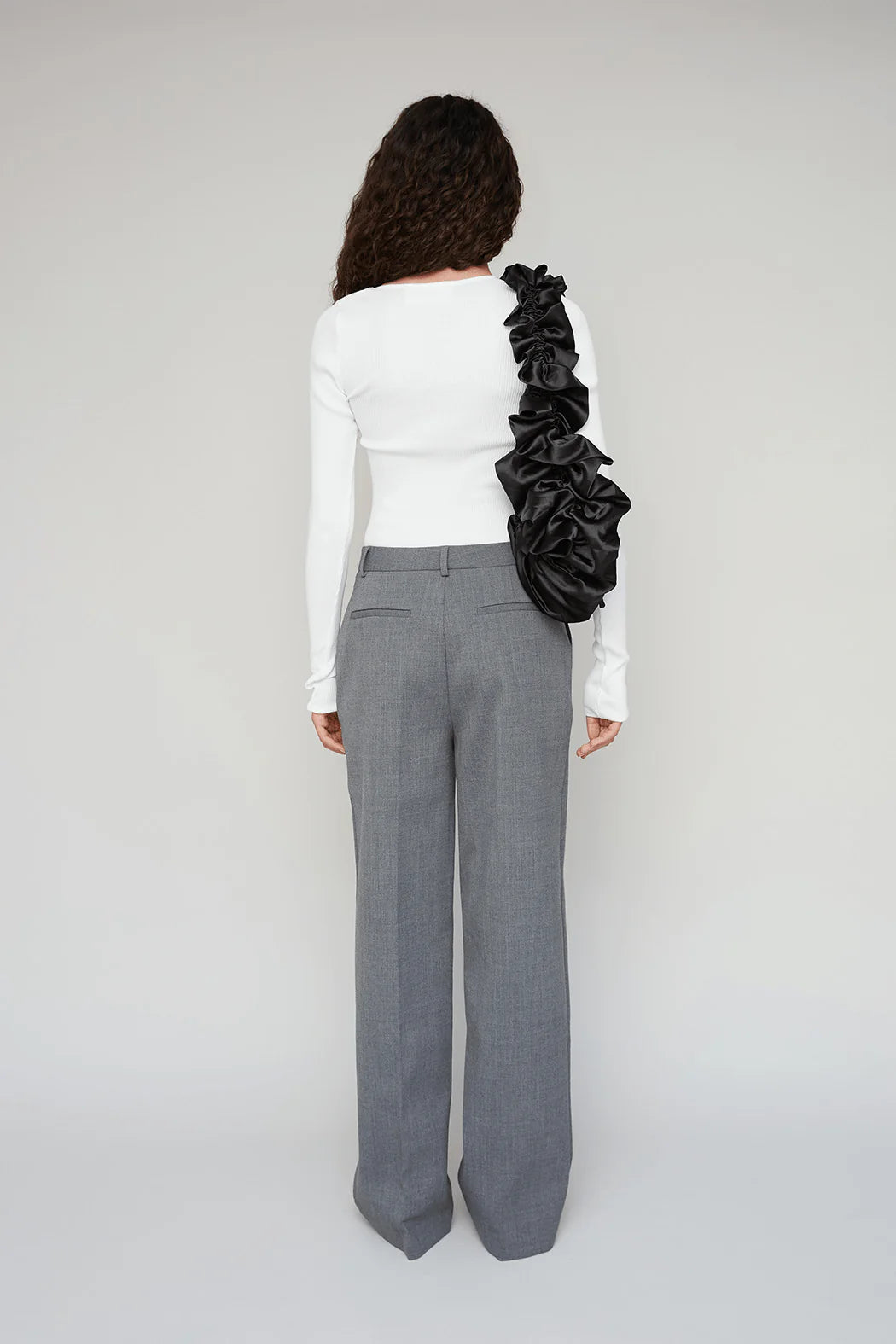 Trouser is crafted from 100% organic cotton. Designed in grey, the trousers feature a straight, tailored leg that creates a clean and elongated silhouette. Finished with belt loops and a front closure, they are a versatile wardrobe essential that pairs effortlessly with the matching Nèlia Blazer or can be styled on their own.