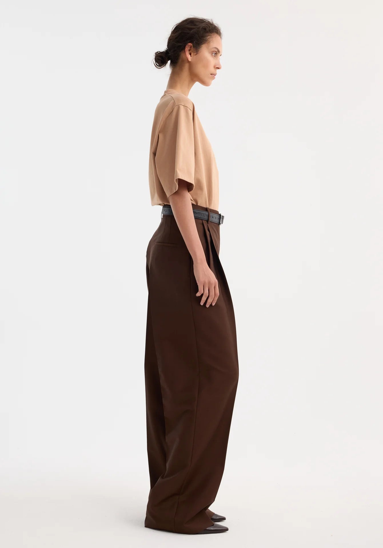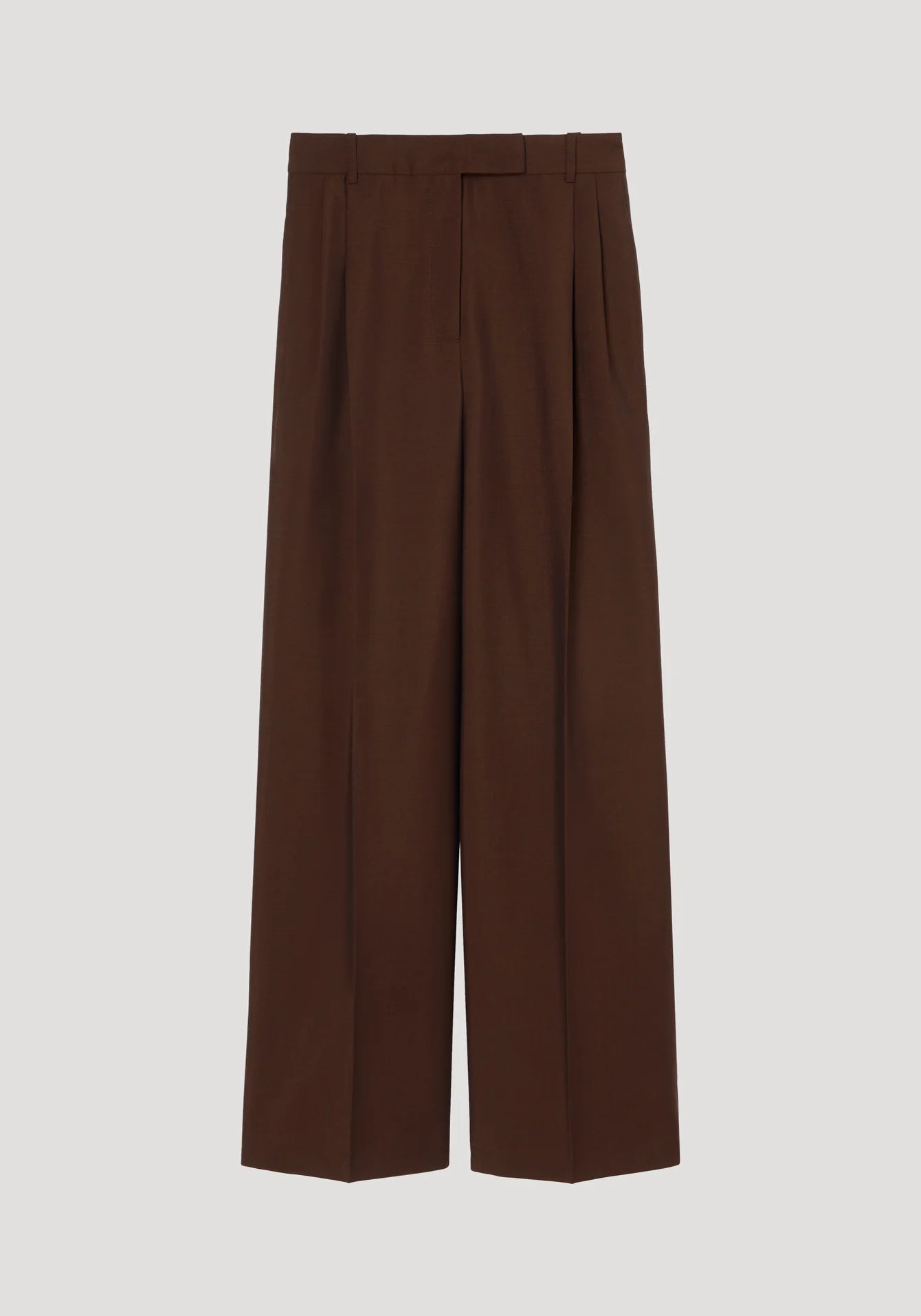 Rohe, Introducing the classic mid-waist tailored trousers crafted from a beautiful virgin wool and mohair blend fabric in a dual tone piqué finish. With a tailored waistband, sharp double pleats and a flattering wide leg.