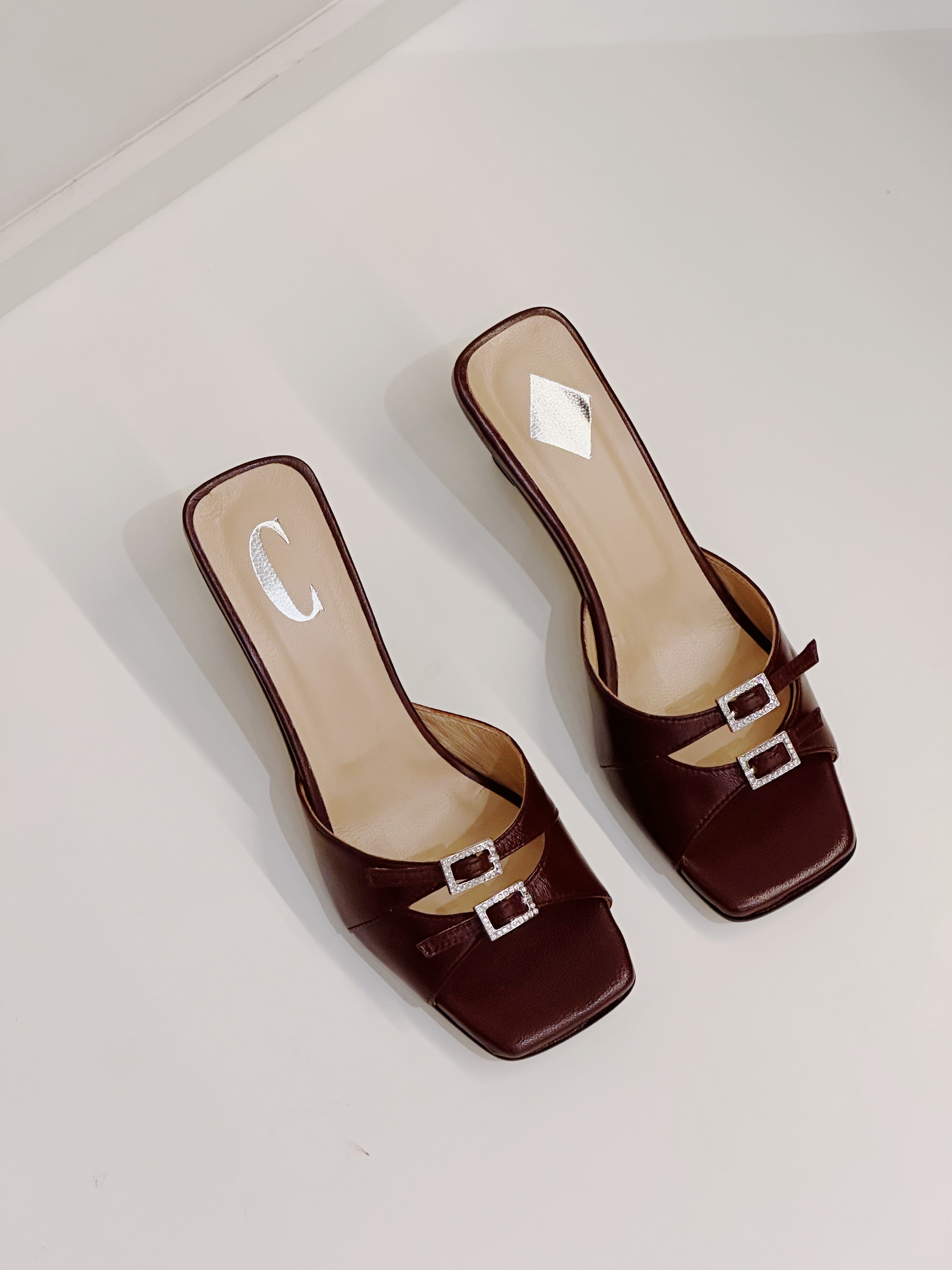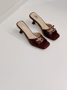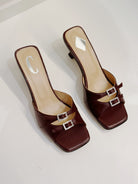 Beautiful Burgundy leather heels. Made in Italy and finished with two buckle straps that can be easily adjusted to your feet for a perfect fit.