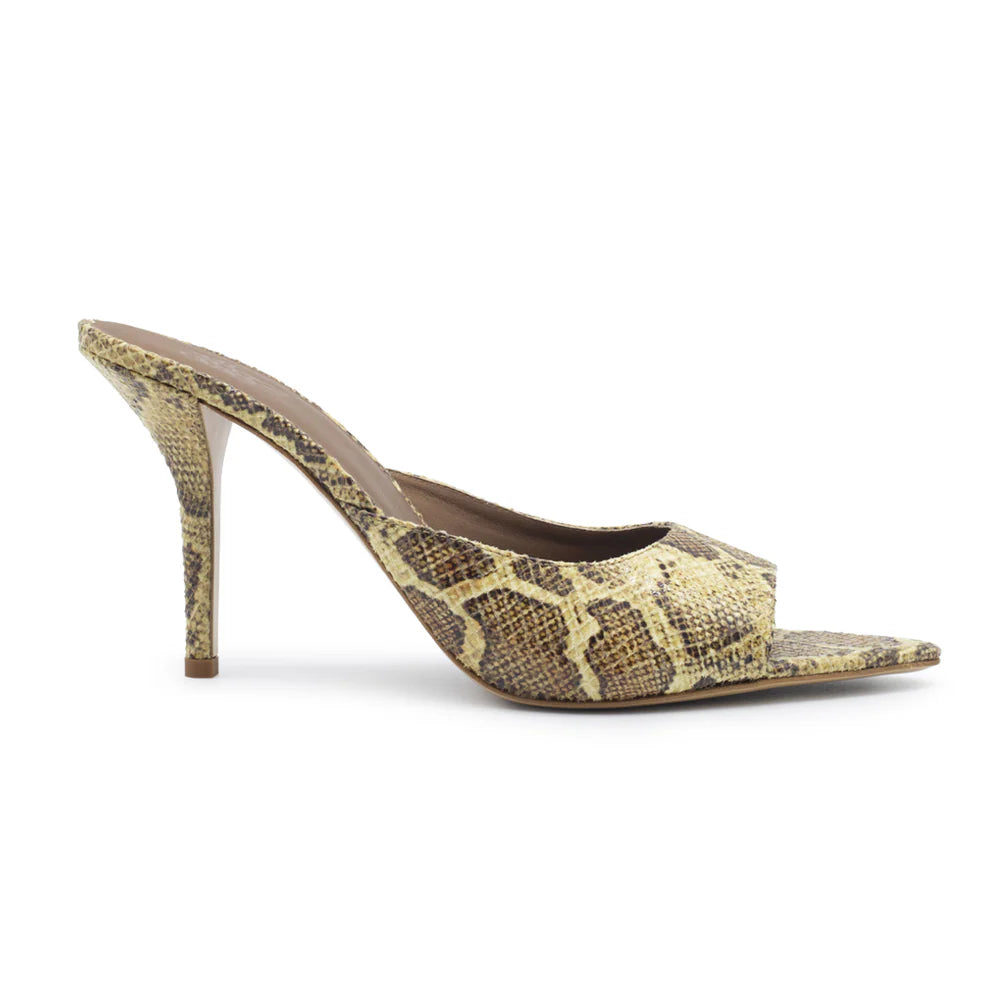 Elevate your style with our refined synthetic python mules with a sleek 85mm heel. Crafted from premium synthetic leather, these mules perfectly blend sophistication and comfort. The pointed toe design adds a touch of refinement, making them the perfect choice for both business and formal occasions. Step into any event with confidence in these versatile mules, where luxurious leather meets contemporary design, ensuring you look bold and elegant.