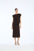 Rotate Brown Midi Skirt Two Layers