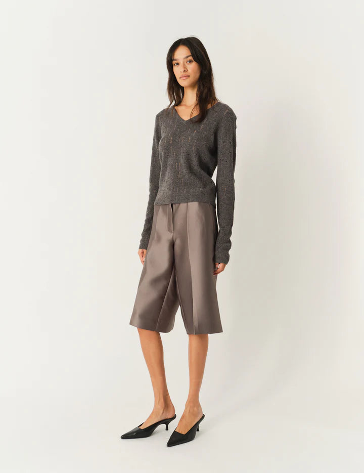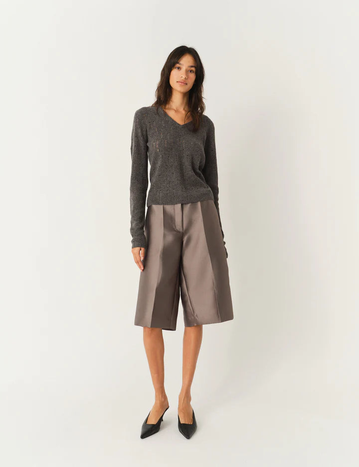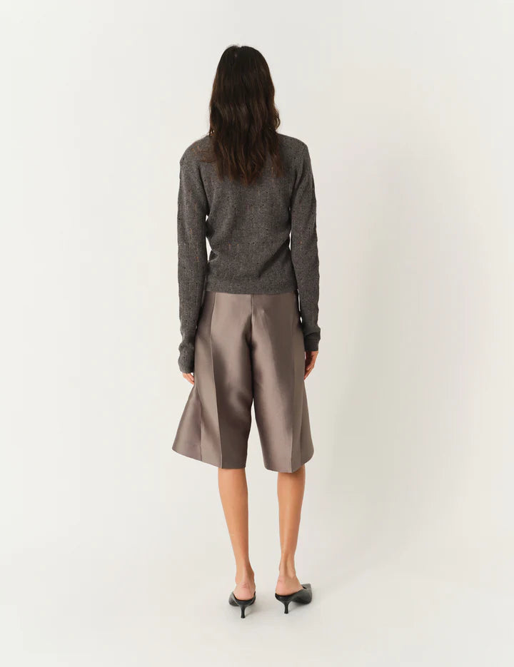 The Garment, The Ambra Shorts are tailored with center front and back pressfolds and a signature logo embroidery on the side. Finished with a subtle sheen, these elegant shorts are designed to elevate your everyday wardrobe.