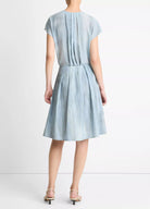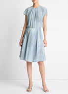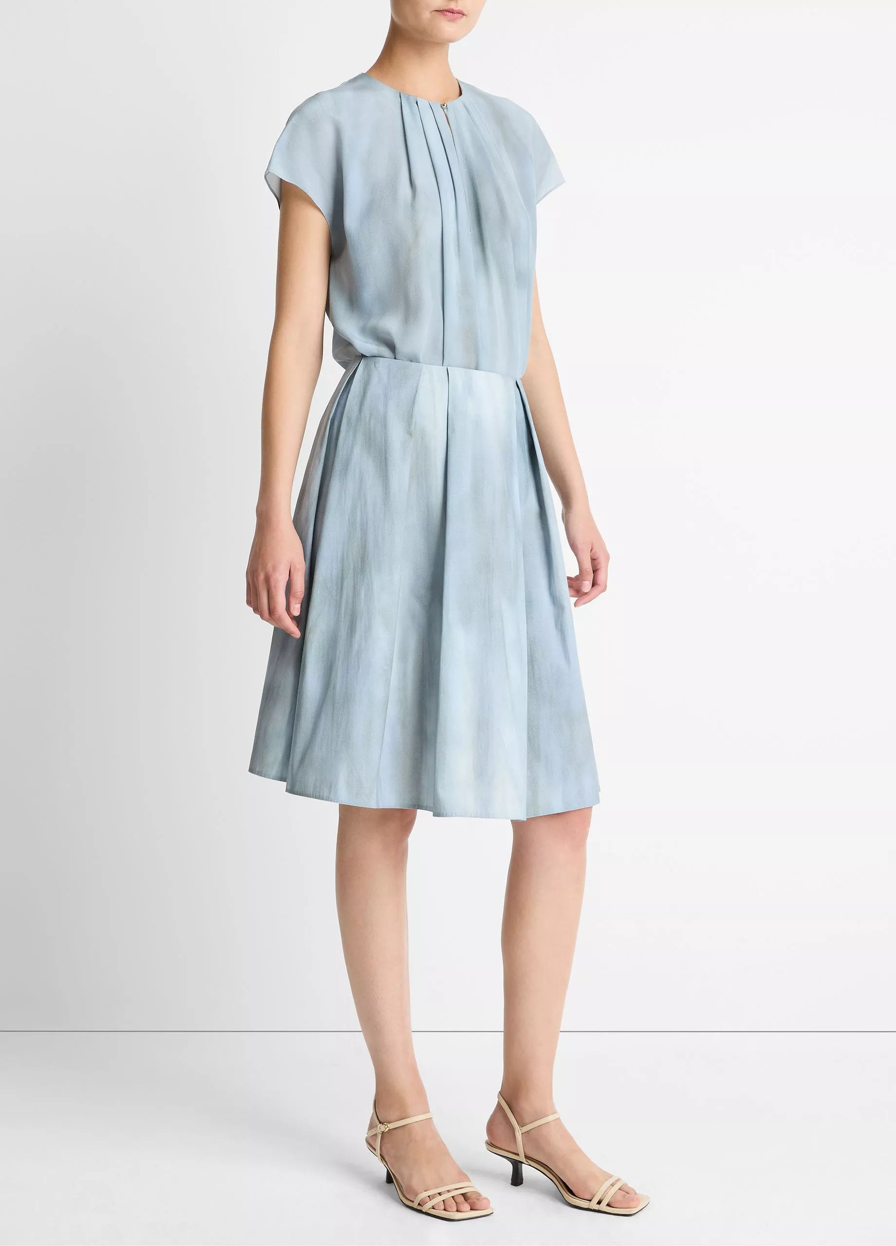Crafted from crisp Italian cotton, our knee-skimming skirt is printed with a washed ombré motif that exudes a soft watercolor-effect finish. We nudged up the volume and dimension through pleating all the way around.