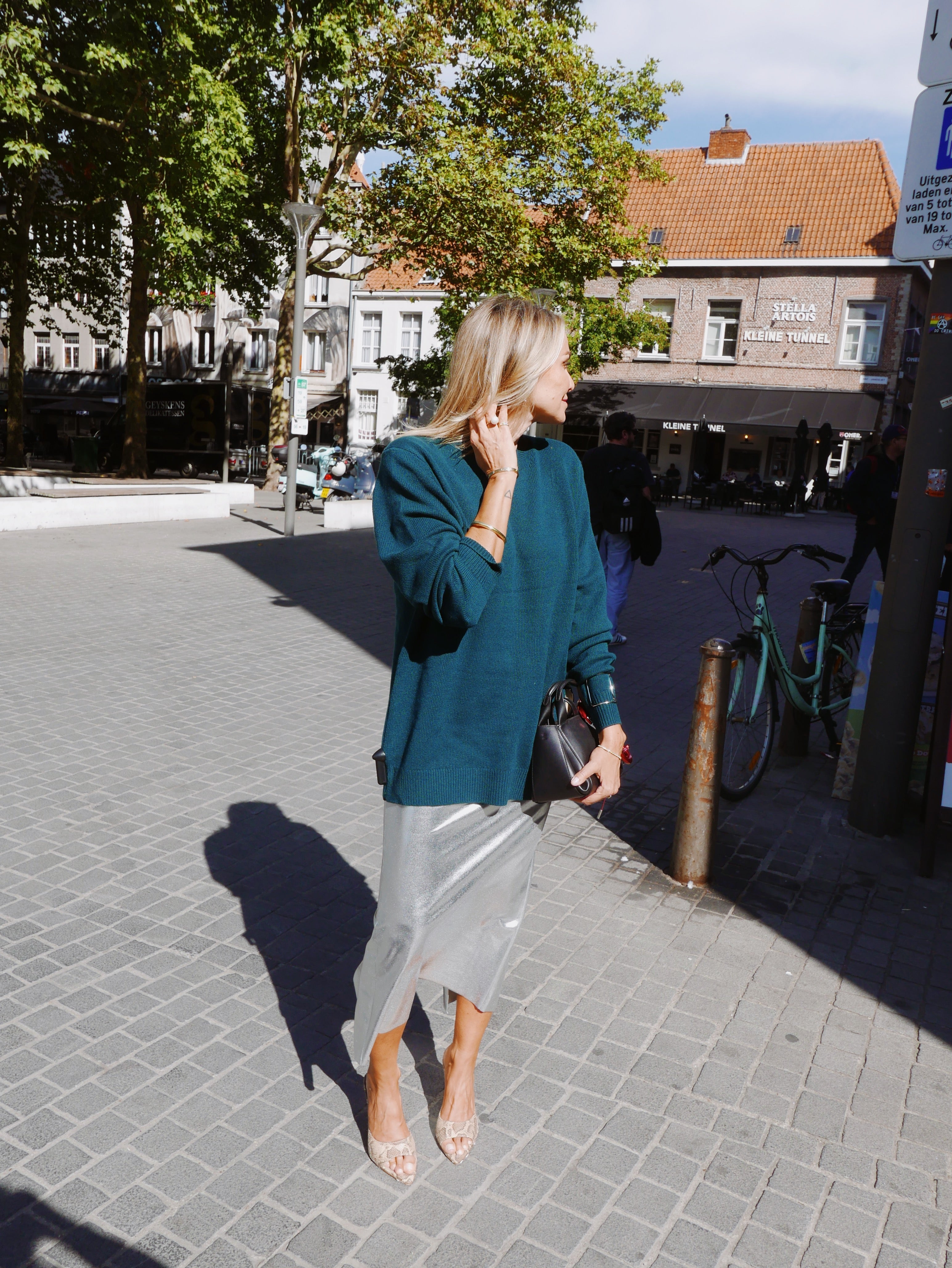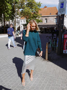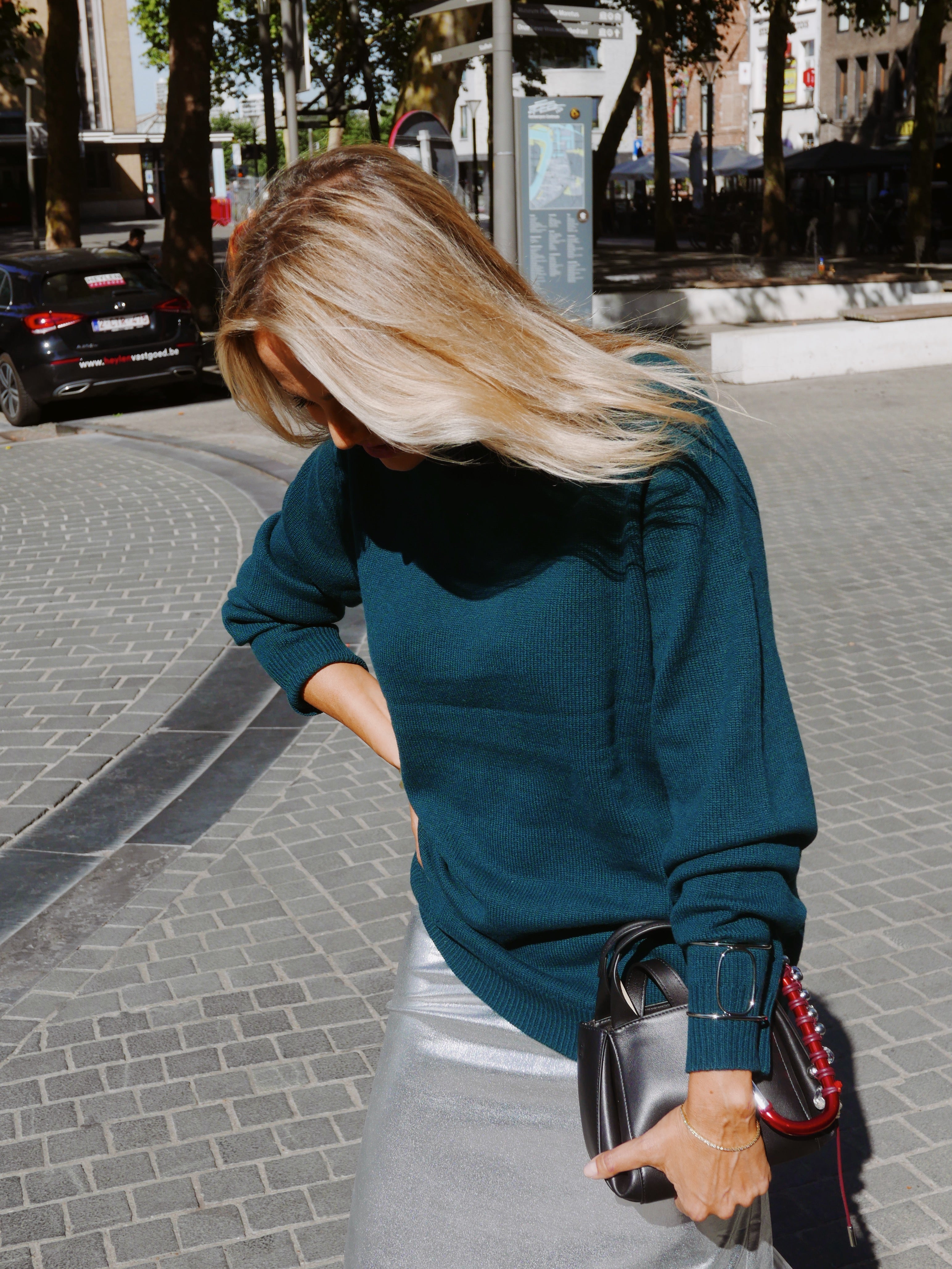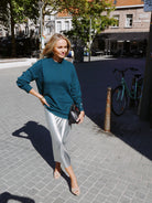 Luxurious dark green 100% cashmere knit with a relaxed oversized fit.