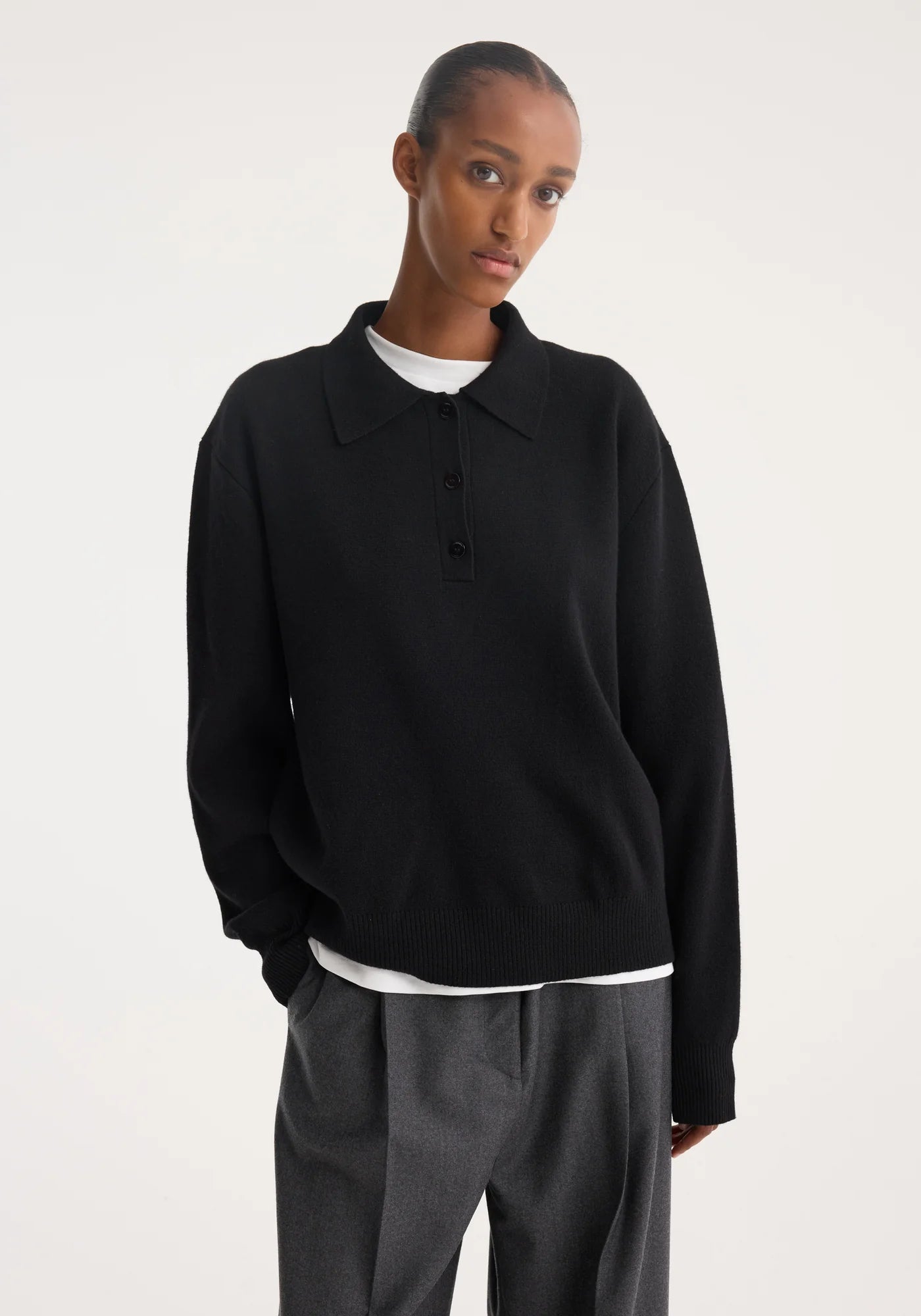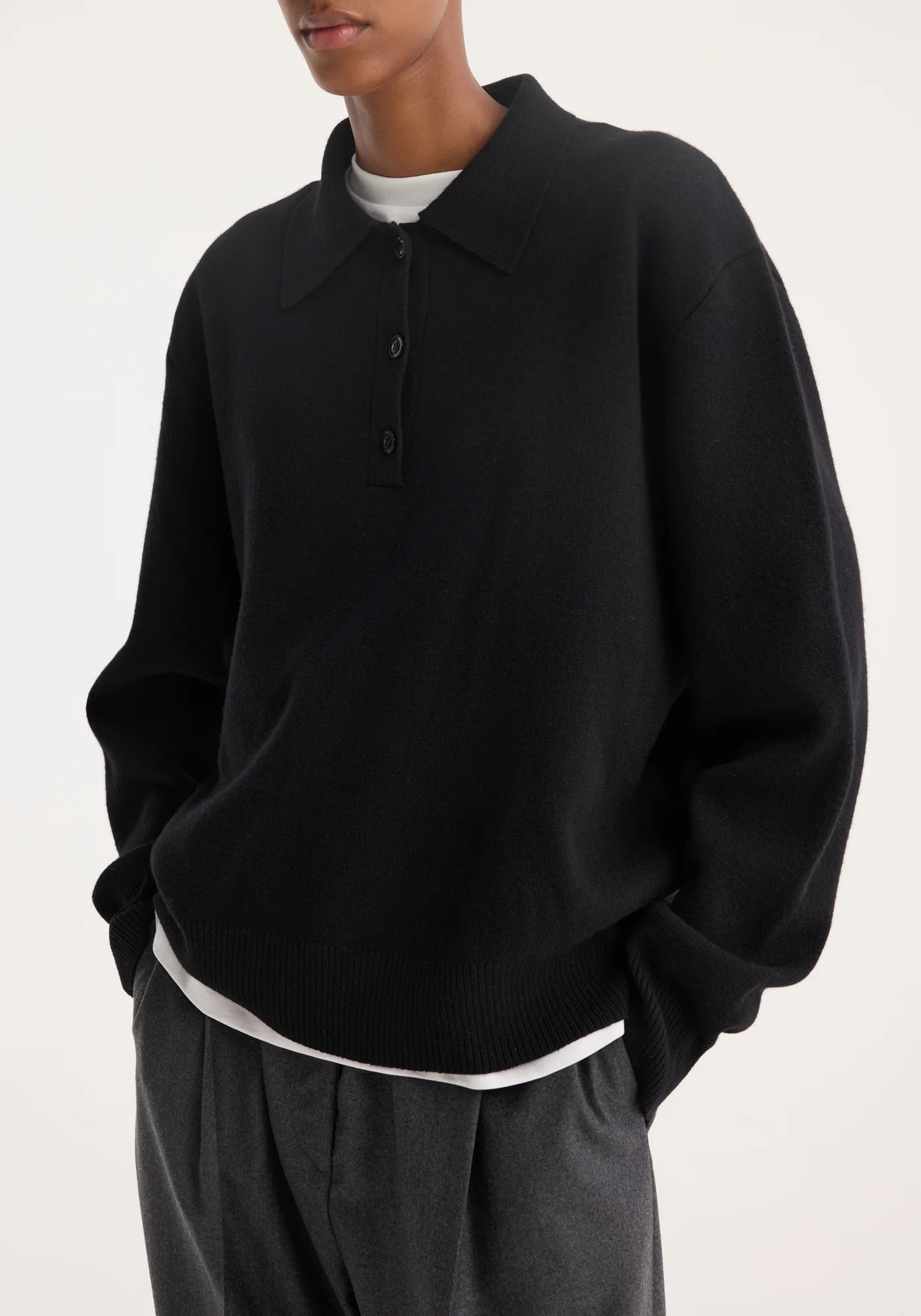 An instant staple, this classic polo is crafted in a compact knit blending soft fine wool and cashmere from Italian mill Linsieme Filati. It offers structured comfort in a relaxed silhouette.