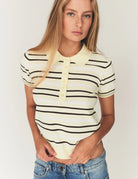 This refined take on a sporty classic features a piqué knit construction with logo stripe detailing, combining comfort and style with a flattering fit and clean, athletic‑inspired details typical of elevated polo designs.