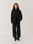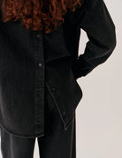 Effortlessly modern. The Merrit Oversized Shirt is cut in stretch denim with a relaxed fit and subtle back button detail—designed to pair perfectly with the matching Barrel Pants.