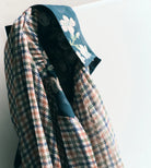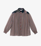 Soft silk crêpon shirt with a front button closure and slightly raised-point collar, designed for an elegant fit. The tartan pattern pairs with the contrasting So Sanderson green collar, creating a refined and well-matched look.